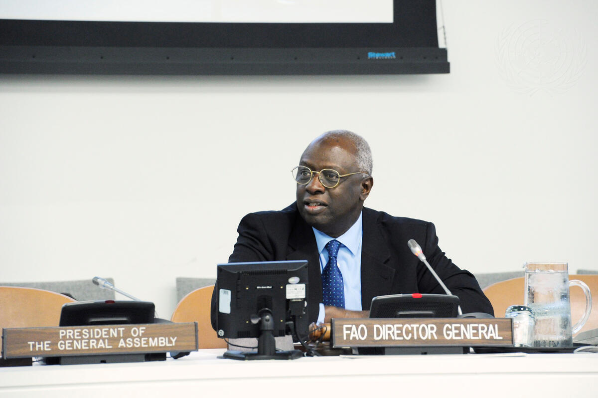 Jacques Diouf, Director-General of the UN Food and Agriculture Organization (FAO), leads a special ceremony in observance of 2010 World Food Day, on the theme “United against Hunger”, at UN Headquarters in New York.