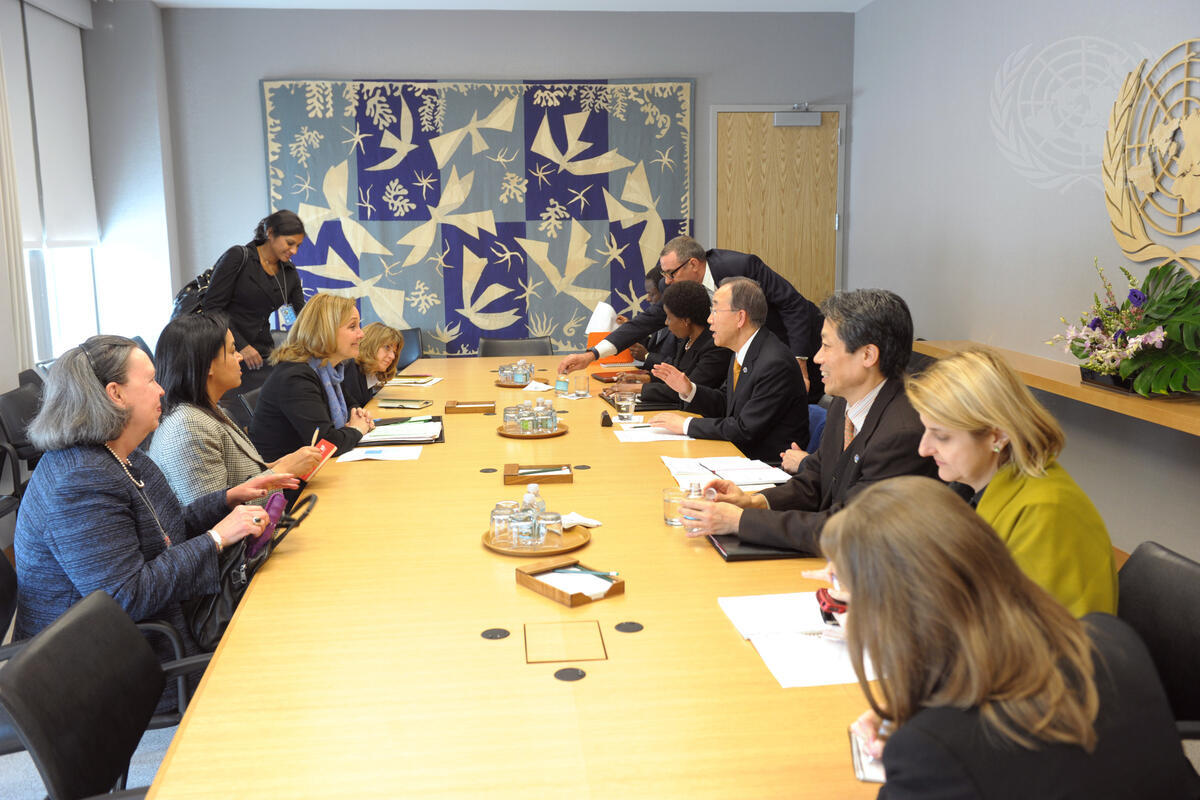 Secretary-General Ban Ki-moon (fourth from right) meets with Josette Sheeran (third from left), Executive Director of the UN World Food Programme (WFP), to discuss UN budgetary matters in their capacity as members of the High Level Committee on Management (HLCM).