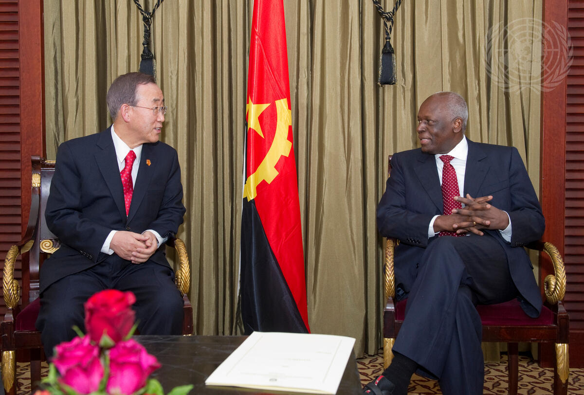 Secretary-General Ban Ki-moon (left) meets with José Eduardo dos Santos, President of the Republic of Angola, in Addis Ababa, Ethiopia.