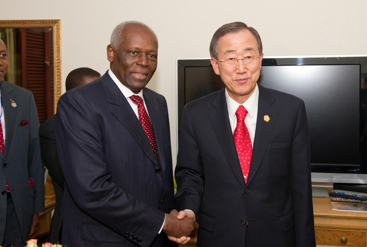 Secretary-General Ban Ki-moon (right) meets with José Eduardo dos Santos, President of the Republic of Angola, in Addis Ababa, Ethiopia.