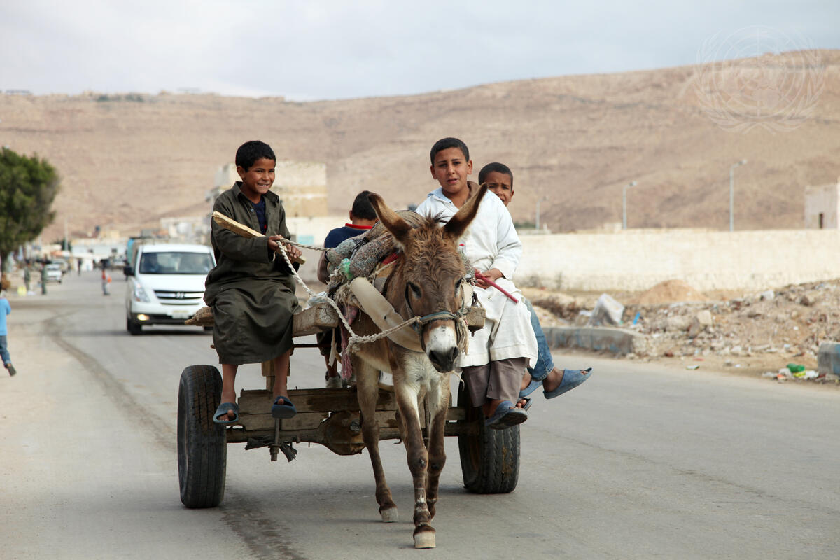 Egyptian children ride a donkey-drawn cart in Sallum, Egypt, near the Libyan border, where up to 5,000 refugees have fled since unrest erupted in Libya over two weeks ago. Most of the refugees are from Bangladesh, Nigeria, Mali and Chad and await onward transportation from Sallum’s land port.