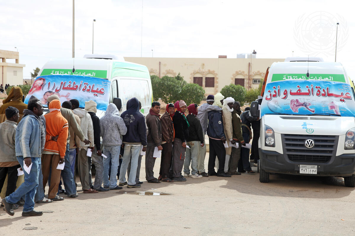 Refugees from Libya—mainly nationals of Bangladesh, Nigeria, Mali and Chad—queue behind a “Ear, Nose and Throat” Mobile Clinic organized by the Egyptian Ministry of Health in Sallum, Egypt, on the Libyan border. The town of Sallum has seen the arrival of almost 5.000 refugees since unrest erupted in Libya over two weeks ago.