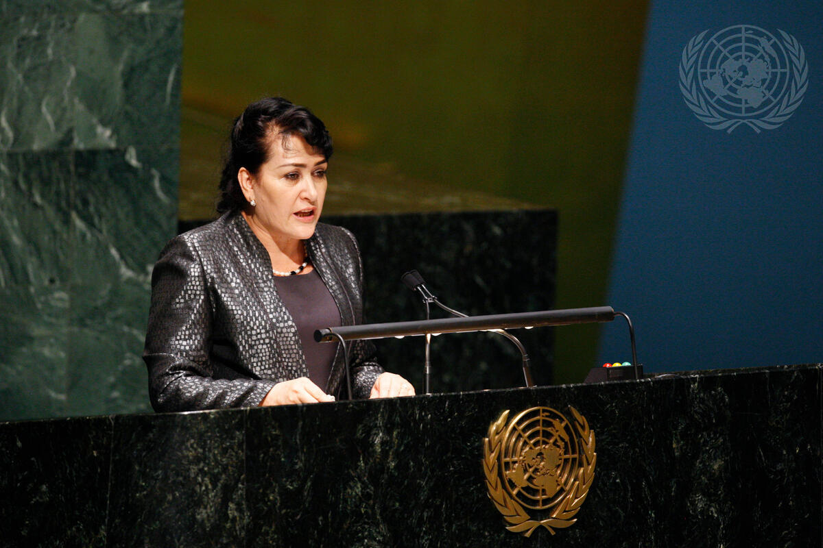 Rukiya Kurbonova, Deputy Prime Minister of the Republic of Tajikistan, addresses the opening of the General Assembly High-Level Meeting on HIV/AIDS.