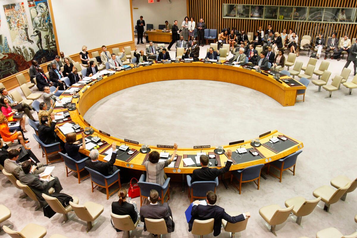 A wide view of the Security Council vote. Resolution 1984 (2011), is adopted with 14 in favour and 1 abstention. It urges all States to cooperate fully with the sanctions imposed on Iran over concern about the nature of its nuclear activities, and extends for one year the mandate of the Panel of Experts created to help monitor the measures’ implementation.