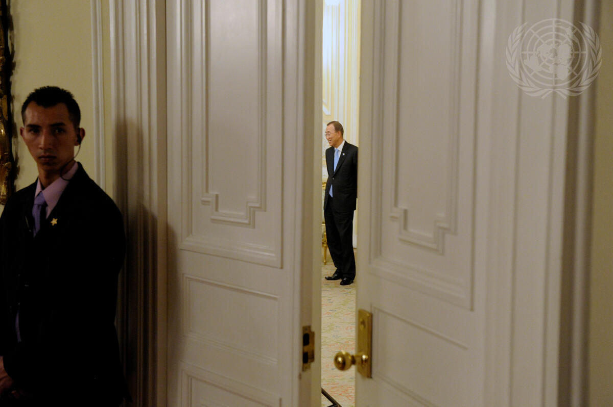A smiling Secretary-General Ban Ki-moon is pictured before a state dinner with Colombian President Juan Manuel Santos Calderón, in Bogotá, Colombia.