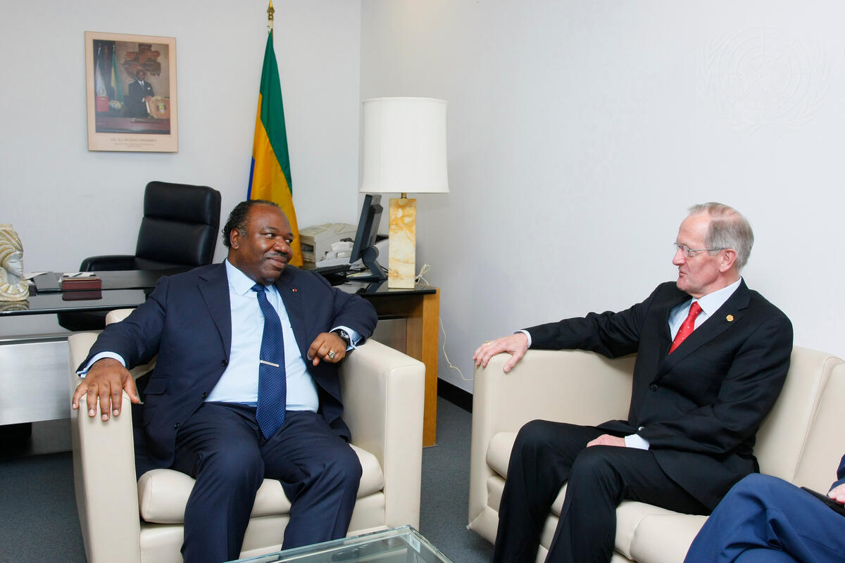 Joseph Deiss (right), President of the sixty-fifth session of the General Assembly, meets with Ali Bongo Ondimba, President of the Gabonese Republic.
