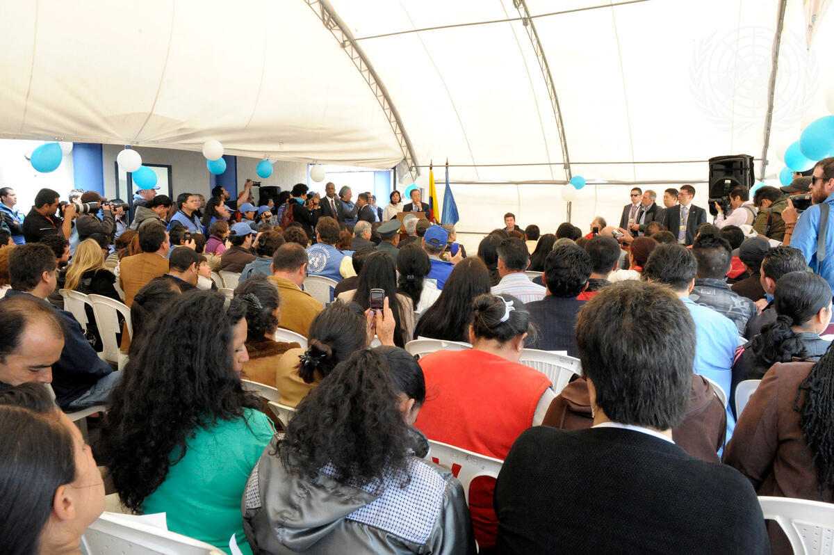 Secretary-General Ban Ki-moon inaugurates a school funded in part by the UN Trust Fund for Human Security, in Soacha, an impoverished suburb of Bogotá, Colombia. A wide view of the inauguration ceremony.