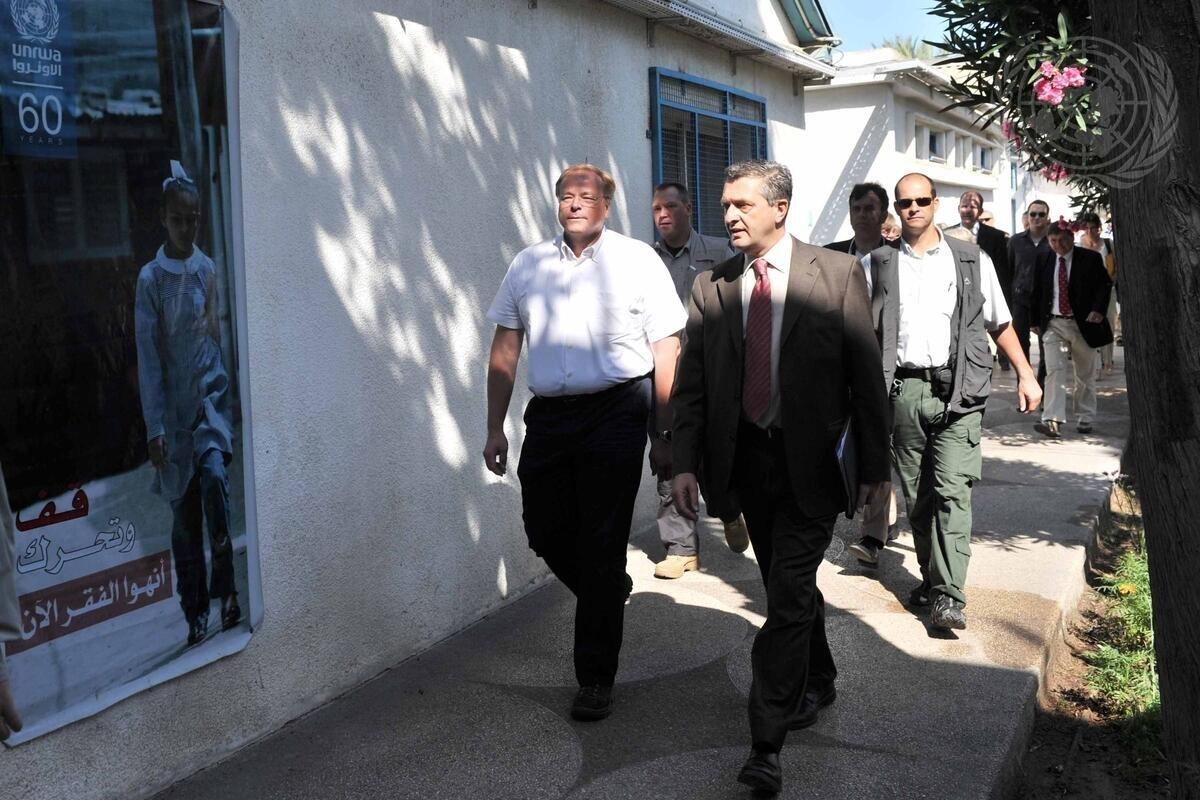 Filippo Grandi (right), Commissioner-General of the United Nations Relief and Works Agency for Palestine Refugees (UNRWA), and Dirk Niebel, Minister of Economic Cooperation and Development of Germany, proceed to the venue of their meeting.
