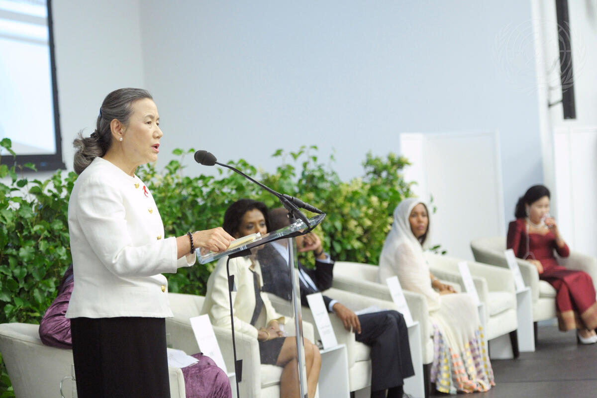 Yoo Soon-taek (centre), wife of Secretary-General Ban Ki-moon, speaks at the special event. First Spouses from around the world are meeting to seek ways to promote commitment - and advance action - toward the elimination of new HIV infections among children by 2015.
