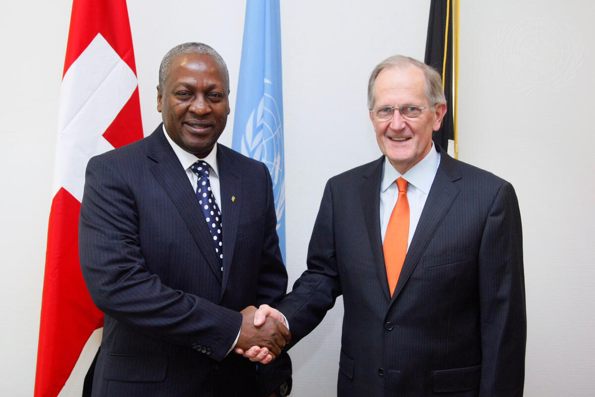 Joseph Deiss (right), President of the sixty-fifth session of the General Assembly, meets with John Dramani Mahama, Vice President of the Republic of Ghana.