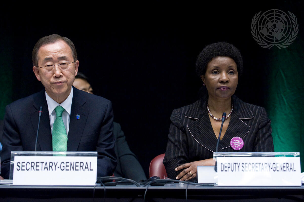 Secretary-General Ban Ki-moon (left) and Deputy Secretary-General Asha-Rose Migiro attend the opening of the Global Platform for Disaster Risk Reduction at the UN Office at Geneva, Switzerland.
