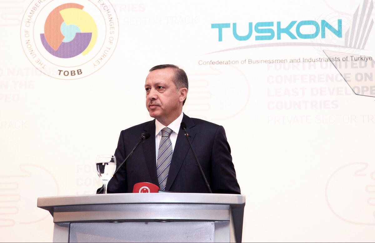Recep Tayyip Erdogan, Prime Minister of Turkey, addresses the audience at the Private Sector Forum at the Fourth UN Conference on the Least Developed Countries (LDC-IV), in Istanbul, Turkey.