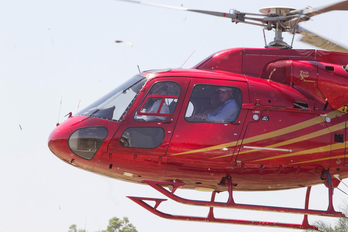 Michel Joseph Martelly, President-elect of Haiti, looks through the helicopter's window during the flight to Hinche to visit Father Armand's Artificial Lake Project. Edmond Mulet, Special Representative of the Secretary-General and Head of the United Nations Stabilization Mission in Haiti, accompanies him.