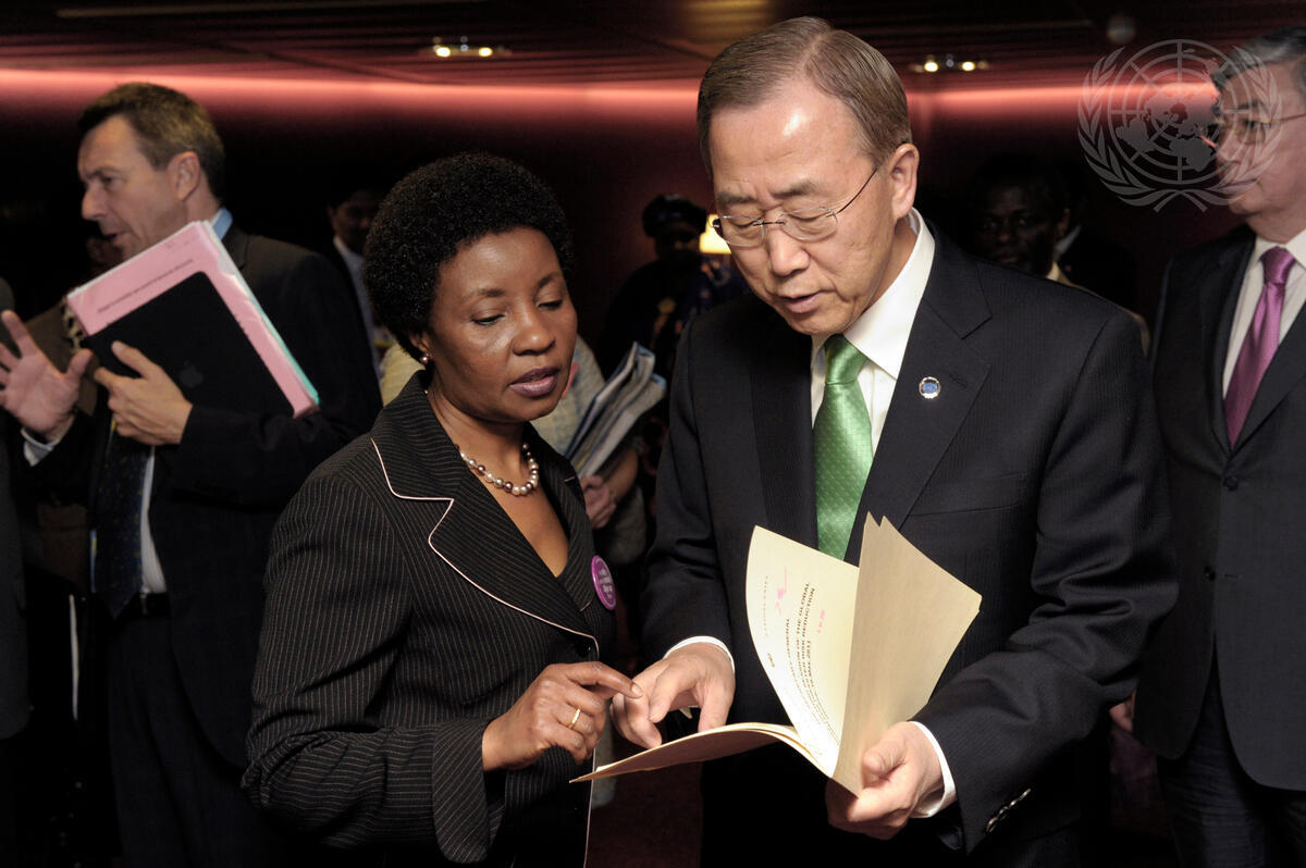 Secretary-General Ban Ki-moon (right) confers with Deputy Secretary-General Asha-Rose Migiro at the opening of the 3rd Global Platform for Disaster Risk Reduction, at the UN Office at Geneva, Switzerland.