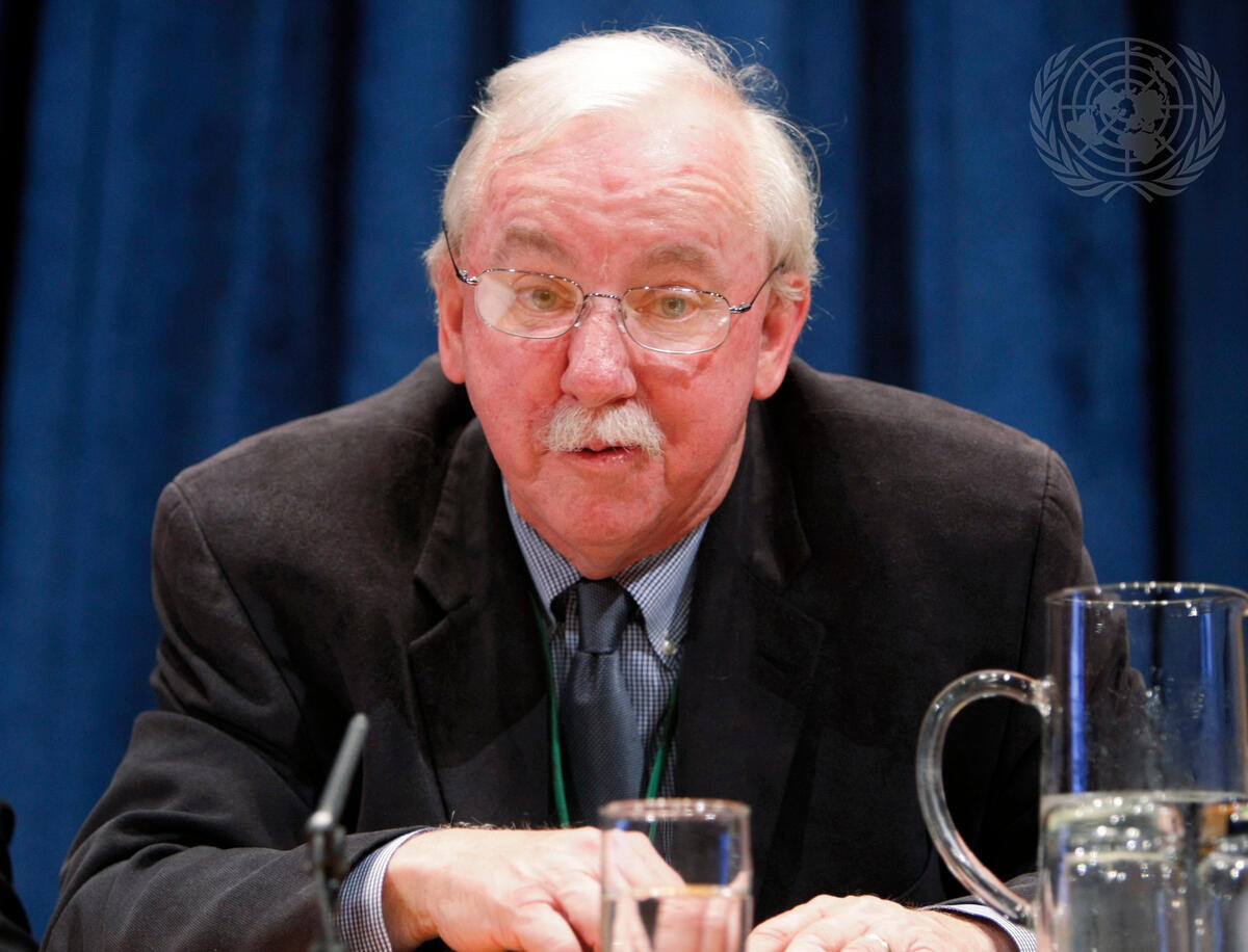 James Sniffen, Information Officer at the New York Liaison Office of the UN Environment Programme (UNEP), speaks at the launching of the report ""Global Report on Human Settlements 2011: Cities and Climate Change"". The report identifies promising ways in which the world can mitigate and adapt to climate change while following more sustainable, resilient patterns of urban development.
