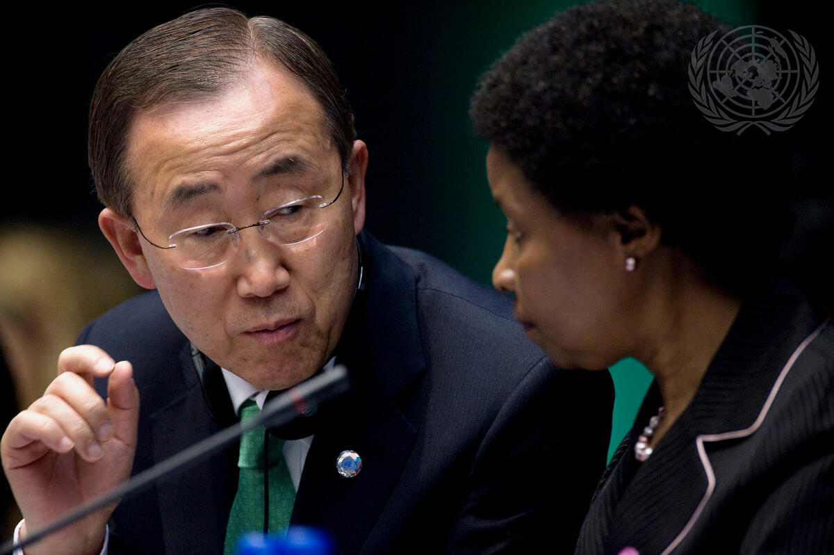 Secretary-General Ban Ki-moon (left) and Deputy Secretary-General Asha-Rose Migiro (right) attend the opening of the Global Platform for Disaster Risk Reduction at the UN Office at Geneva, Switzerland.