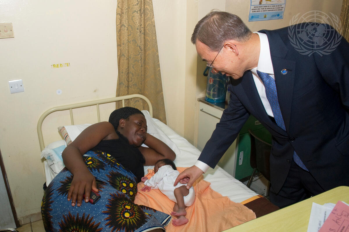 Secretary-General Ban Ki-moon visits a mother and her baby at the Maitama General Hospital in Abuja.