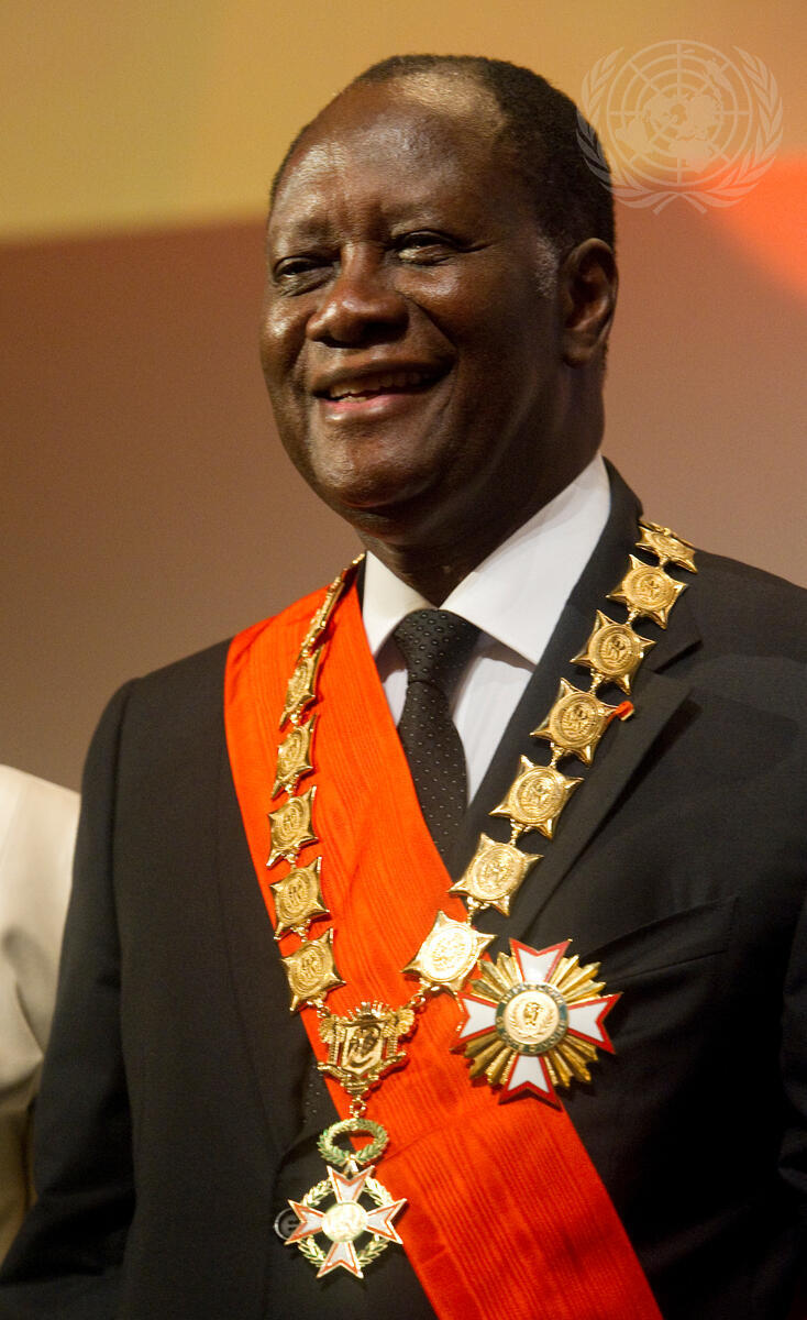 A close-up of Alassane Ouattara, President of Côte d'Ivoire, during his inauguration ceremony in Ivorian capital Yamassoukro. Secretary-General Ban Ki-moon travelled to Côte d'Ivoire to attend the ceremony.