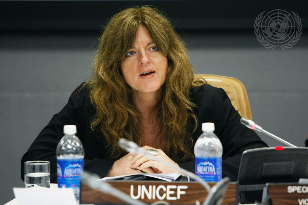 Hilde Johnson, Deputy Executive Director of the United Nations Children’s Fund (UNICEF), speaks at the special event to commemorate the first anniversary of the launch of the global campaign for the universal ratification of the Optional Protocols on the Involvement of Children in Armed Conflict and on the Sale of Children, Child Prostitution and Child Pornography.
