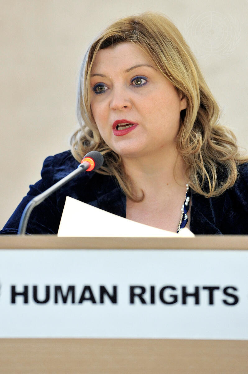 Edith Harxhi, Deputy Minister for Foreign Affairs of the Republic of Albania, addresses the high-level segment of the 16th session of the Human Rights Council in Geneva, Switzerland.