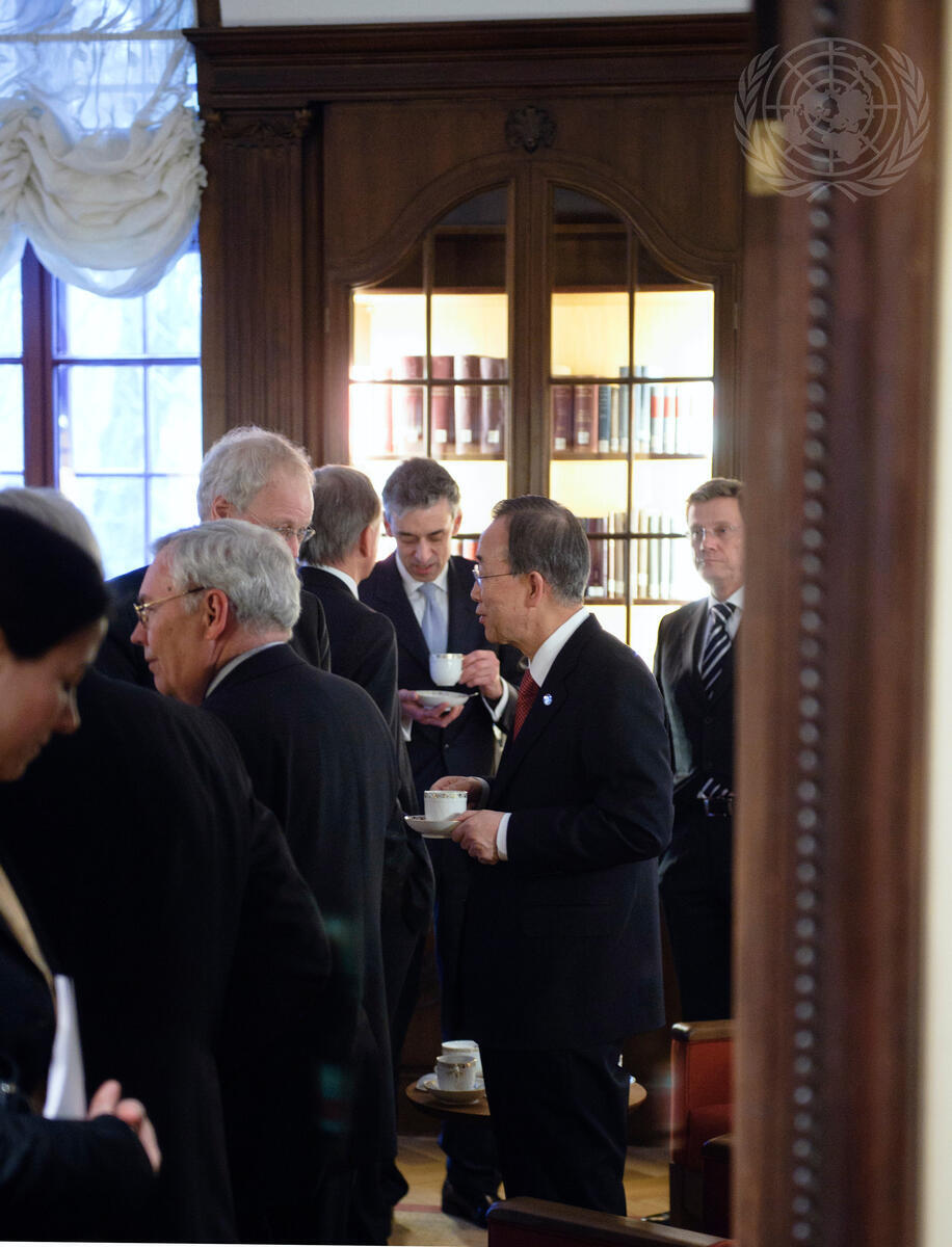 Secretary-General Ban Ki-moon (second from right) attends a luncheon hosted by Guido Westerwelle, Minister for Foreign Affairs of Germany, at Villa Borsig, the Foreign Ministry Guest House, in Berlin, Germany.
