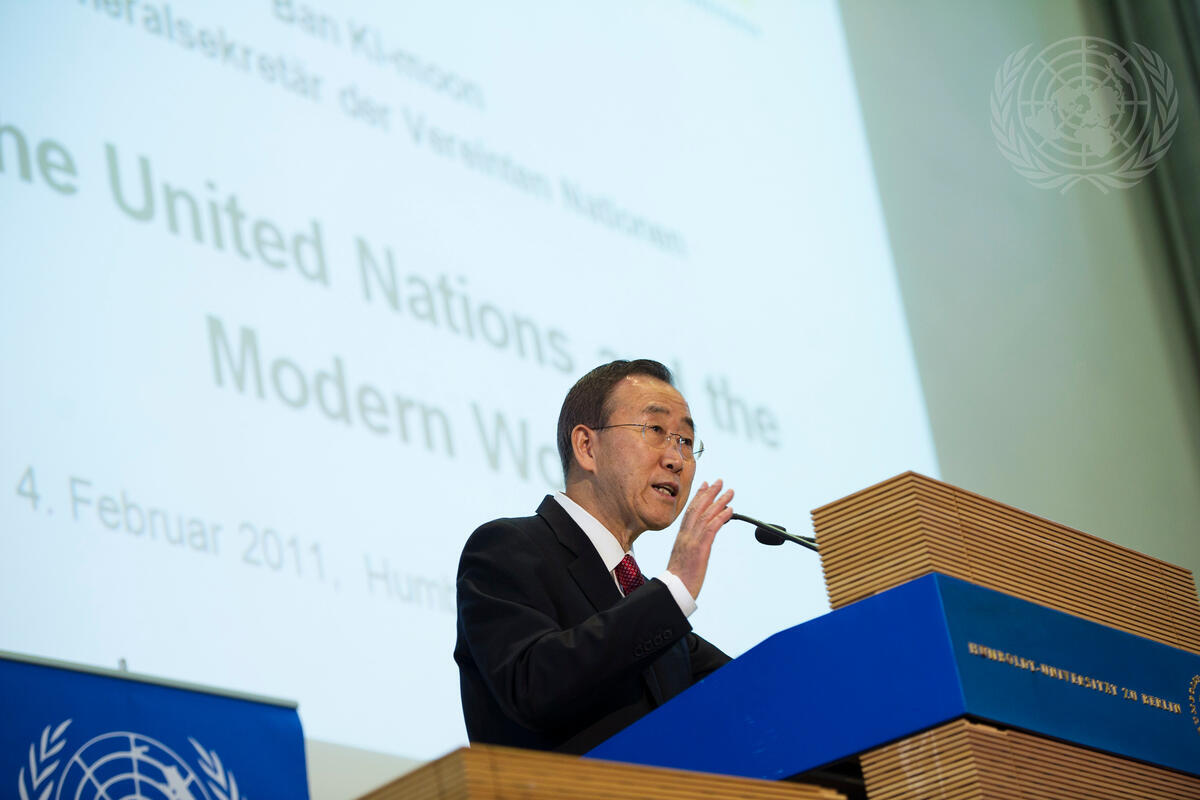 Secretary-General Ban Ki-moon delivers a lecture, ""The UN and the Modern World”, at Humboldt University of Berlin, Germany. The lecture was co-hosted by the University and the UN Association of Germany.
