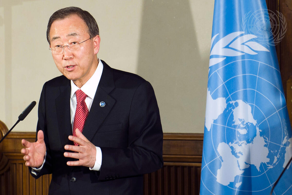 Secretary-General Ban Ki-moon briefs journalists following his meeting with Guido Westerwelle, Minister for Foreign Affairs of Germany, at Villa Borsig in Berlin.