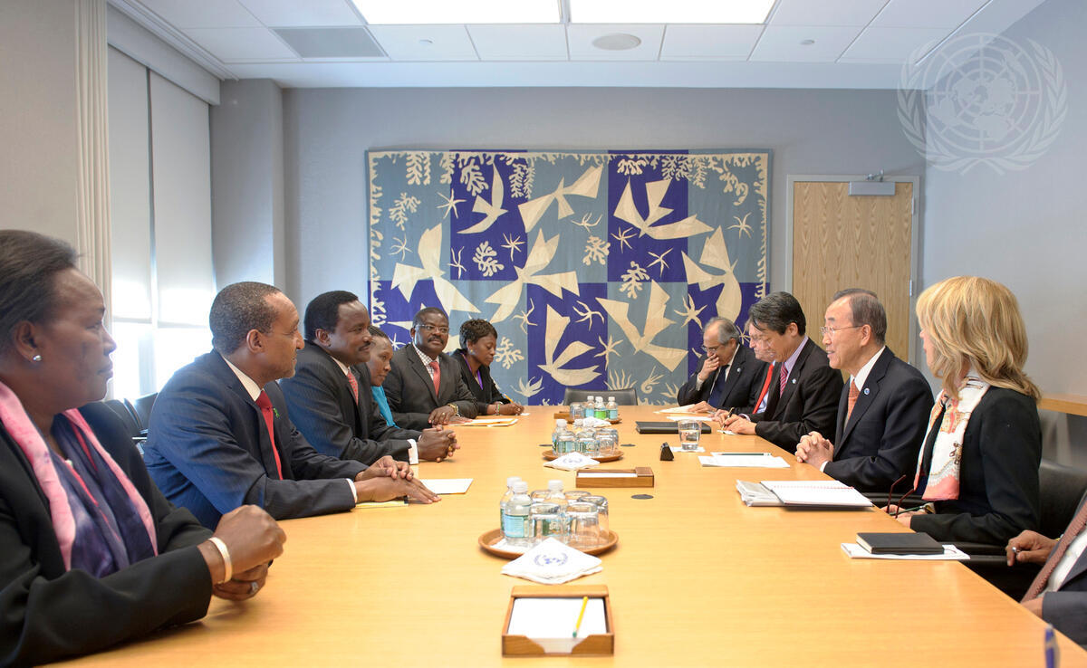 Secretary-General Ban Ki-moon (second from right) meets with Stephen Kalonzo (third from left), Vice President of the Republic of Kenya.