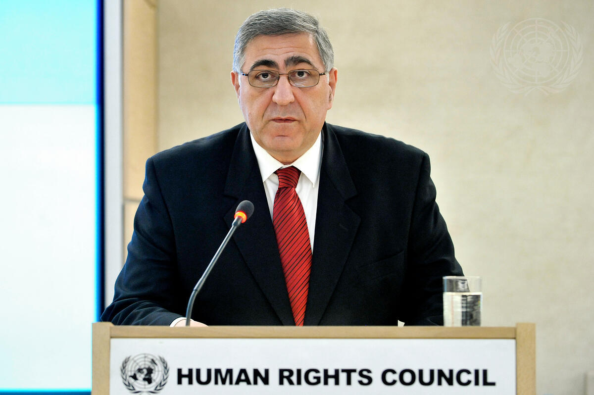 Arman Kriakossian, Deputy Minister for Foreign Affairs of the Republic of Armenia, addresses the high-level segment of the 16th session of the Human Rights Council in Geneva, Switzerland.