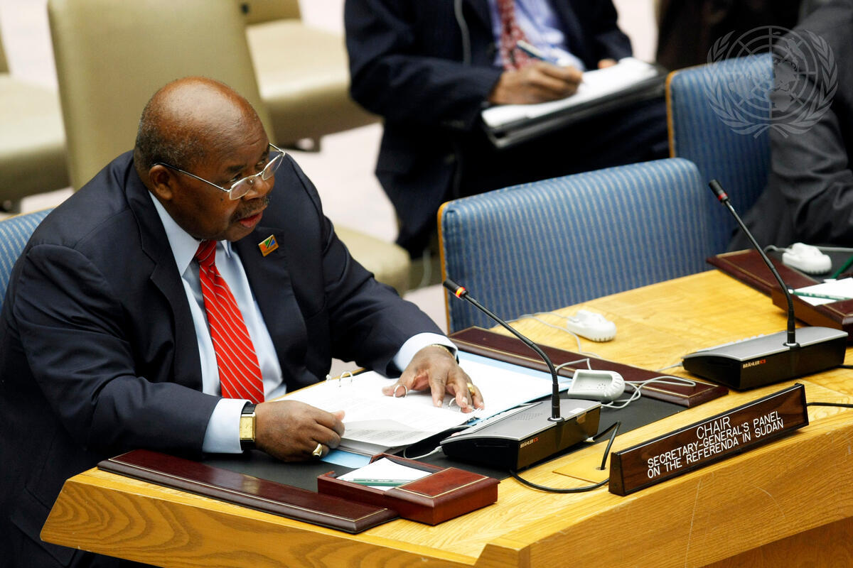 Benjamin Mkapa, former President of Tanzania and Chair of the UN Secretary General's Panel on the Referenda in Sudan, briefs the Security Council on the results of Southern Sudan's historic referendum. Over 98% of referendum participants voted for independence from Sudan.