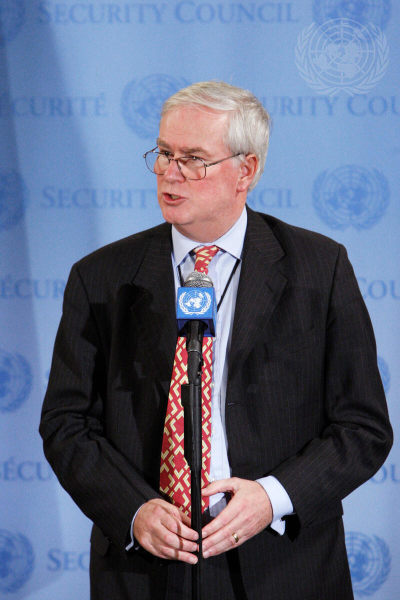 Mark Lyall Grant, Permanent Representative of the United Kingdom to the UN, briefs correspondents as the Security Council continues its discussions on the Sudan. The country has just concluded its referendum in which an overwhelming majority of Southern Sudanese voted for independence.