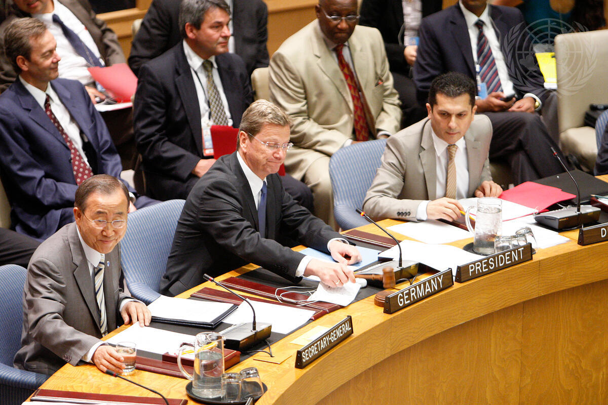 Guido Westerwelle, Minister for Foreign Affairs of Germany, chairs the Security Council meeting as President of the Security Council for July 2011.