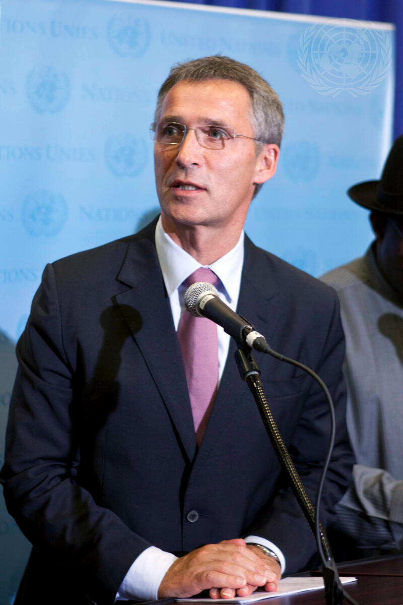 Jens Stoltenberg, Prime Minister of Norway and Co-Chair of the UN Commission on Life-Saving Commodities, speaks to correspondents during the press conference.
