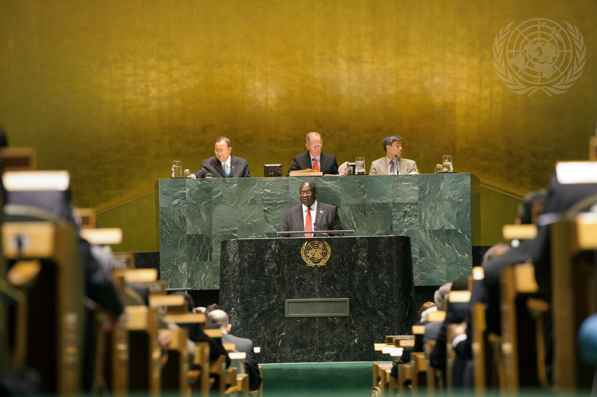 Riek Machar Teny-Dhurgon, Vice President of the Republic of South Sudan, speaks at the historic General Assembly meeting.