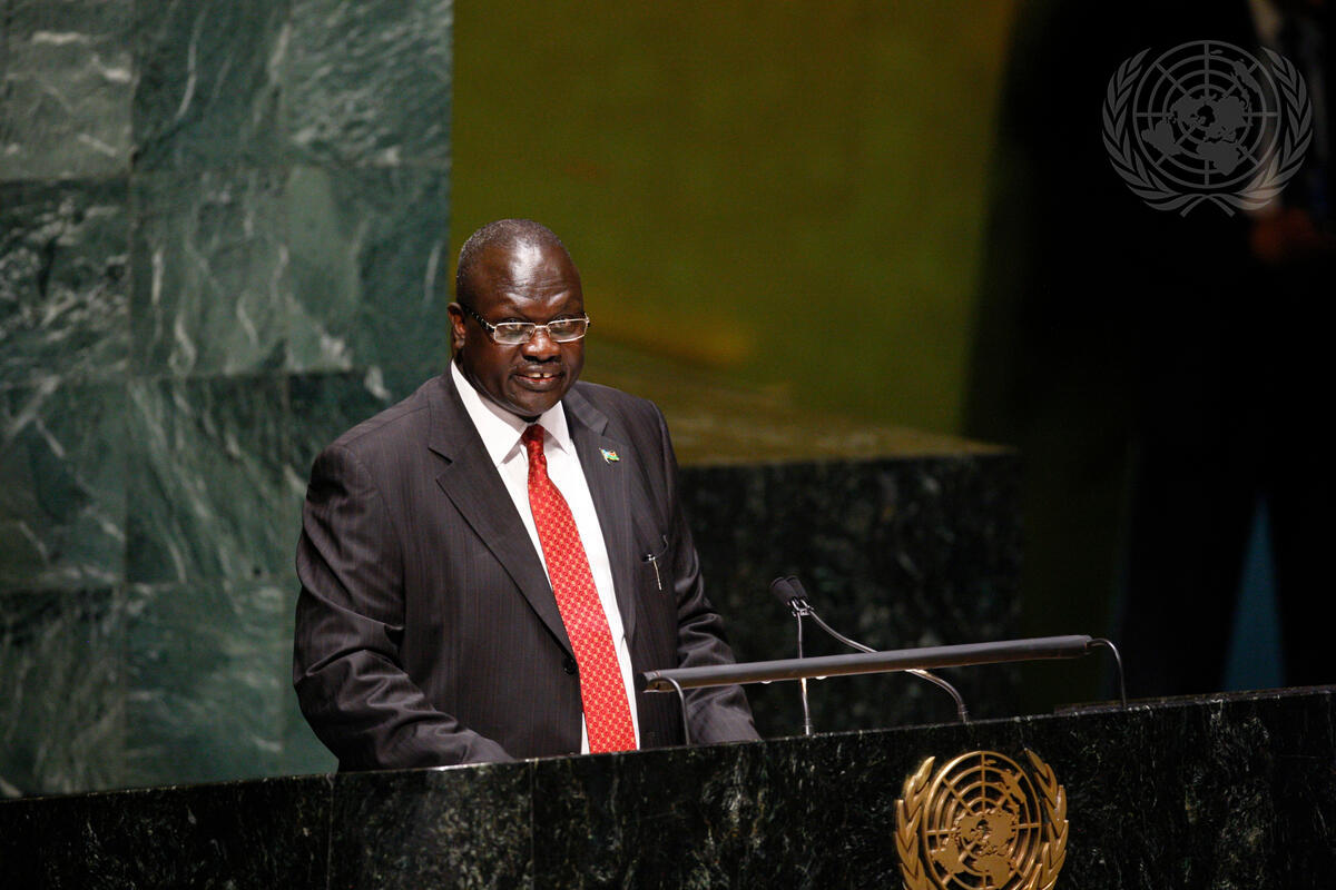 Riek Machar Teny-Dhurgon, Vice President of the Republic of South Sudan, addresses the General Assembly following the Assembly’s decision to admit his nation as the Organization’s 193rd member state.
