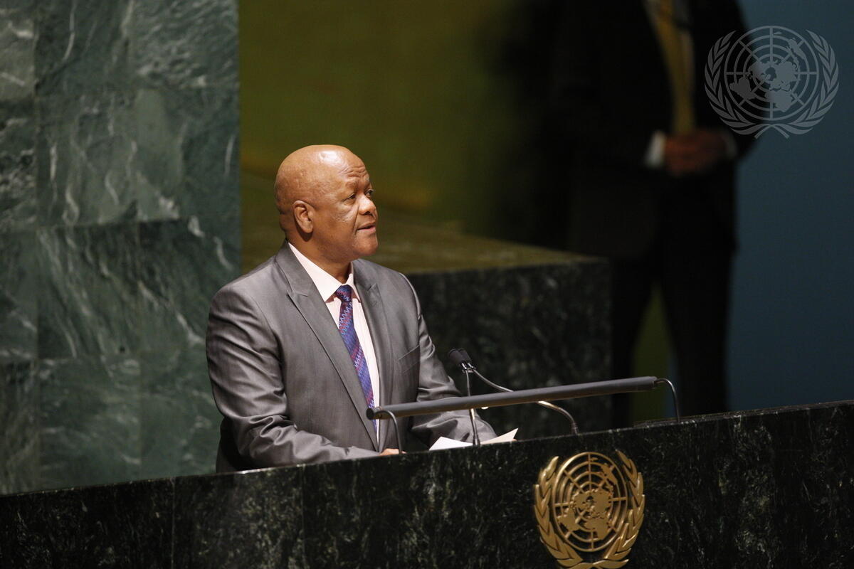 Jeffrey Thamsanqa Radebe, Minister for Justice and Constitutional Development of South Africa, speaking on behalf of the African States, introduces the draft resolution recommending the admission of the Republic of South Sudan to the United Nations.