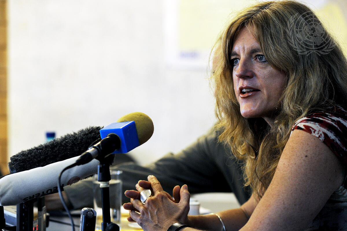 Hilde Johnson, Special Representative of the Secretary-General and Head of the United Nations Mission in the Republic of South Sudan (UNMISS), gives her first press conference to the national and international media.
