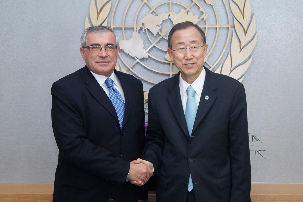 Secretary-General Ban Ki-moon (right) meets with Sven Alkalaj, Minister for Foreign Affairs of Bosnia and Herzegovina.