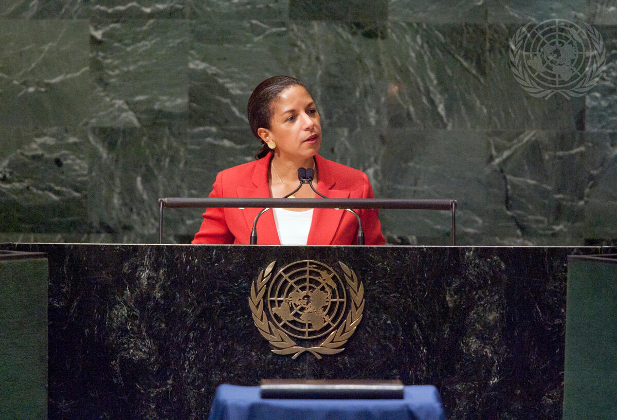 Susan E. Rice, Permanent Representative of the United States of America to the UN, addresses the General Assembly following its re-appointment of Ban Ki-moon as UN Secretary-General. Mr. Ban will serve his second five-year term beginning 1 January 2012.