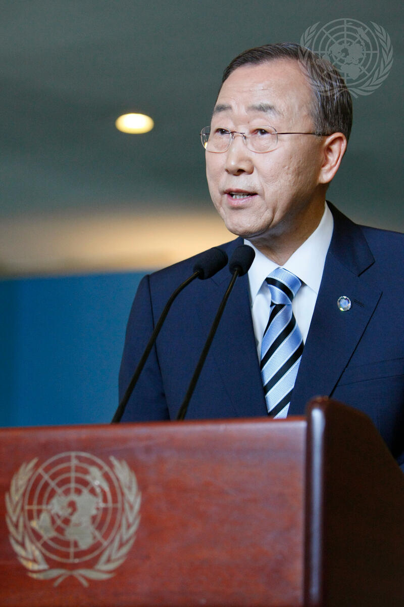Ban Ki-moon speaks to the press after being sworn in to a second term as UN Secretary-General.