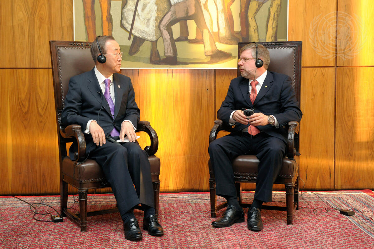 Secretary-General Ban Ki-moon (left) meets with Marco Maia, President of the Brazilian National Congress' Chamber of Deputies, in Brasilia.