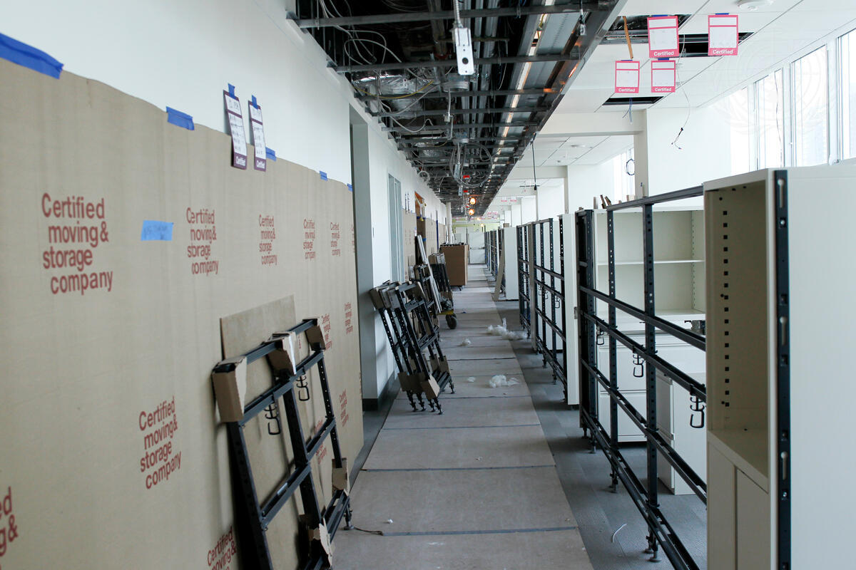 Cubicles are installed on one of the newly-renovated floors of the Secretariat building.