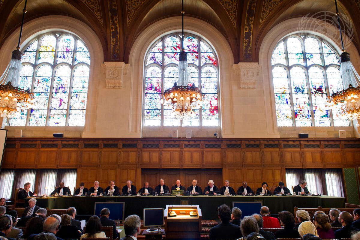 The Great Hall of Justice of the Peace Palace at the opening of the International Court of Justice (ICJ)’s hearings in the Nicaragua v. Colombia case.