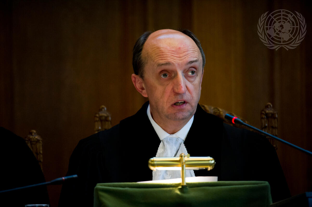 International Court of Justice (ICJ) President, Judge Peter Tomka, at the opening of the ICJ hearings in the Nicaragua v. Colombia case.