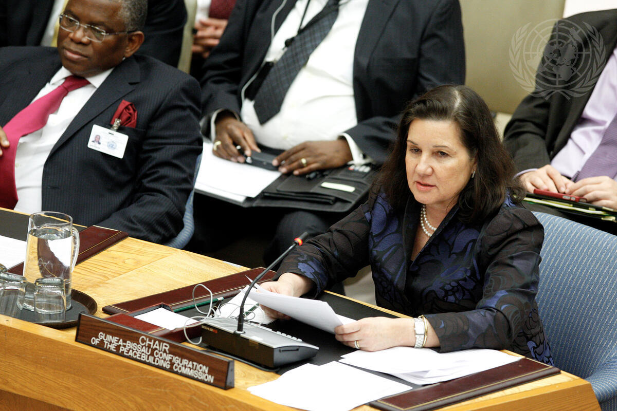Maria Luiza Ribeiro Viotti, Permanent Representative of Brazil to the UN and Chair of the Guinea-Bissau configuration of the Peacebuilding Commission, briefs the Security Council at its meeting on the crisis in Guinea-Bissau, where a military coup took place one week ago.