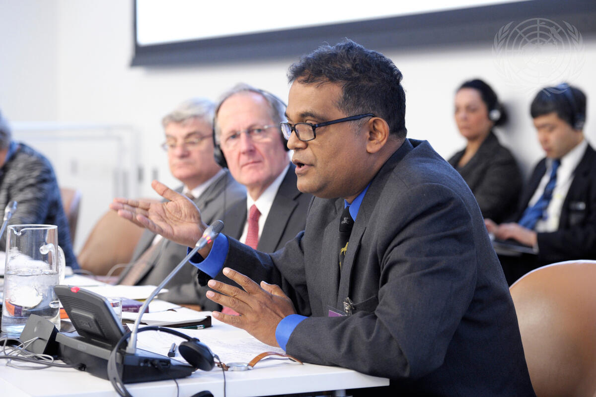 Amitav Acharya (right), Professor of International Relations at American University and Chair of the University’s ASEAN Studies Center, addresses a panel discussion on “Human security –– Its application and added value”, part of the General Assembly’s day-long thematic debate on human security. Beside Mr. Acharya is Joseph Deiss, President of the sixty-fifth session of the Assembly.