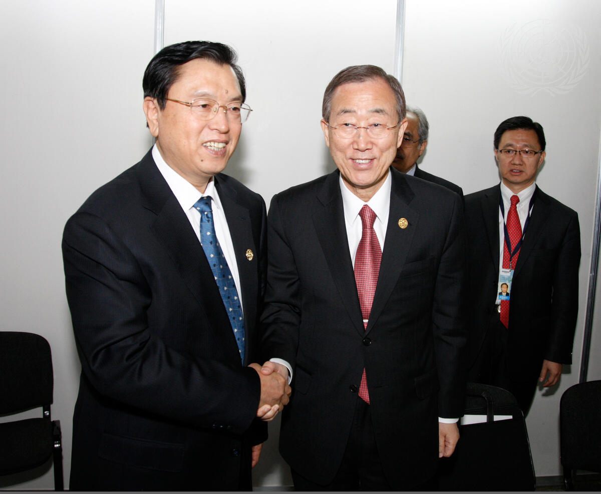 Secretary-General Ban Ki-moon (front, right) meets with Zhang Dejiang, Vice-Premier of the People’s Republic of China, on the sidelines of the Kyiv Summit on Safe and Innovative Use of Nuclear Energy, in Kiev, Ukraine.