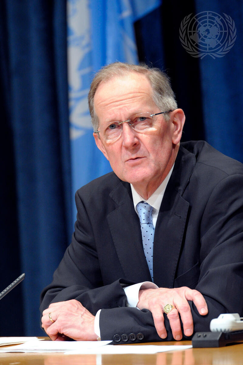 Joseph Deiss, President of the sixty-fifth session of the General Assembly, updates reporters on the work of the Assembly.
