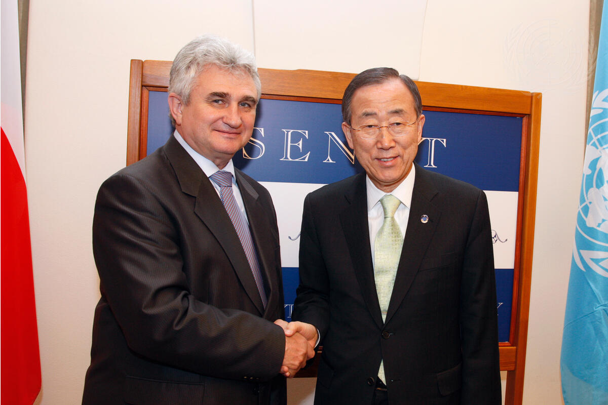 Secretary-General Ban Ki-moon (right) meets with Milan Stech, President of the Senate of the Parliament of the Czech Republic.
