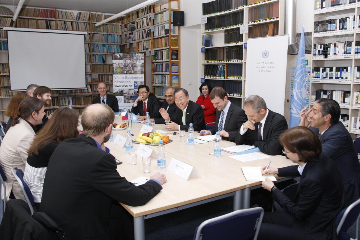 Wide view of a meeting Secretary-General Ban Ki-moon has at the United Nations Information Centre in Prague with the heads of the UN agencies in the Czech Republic.